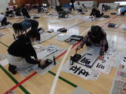 「春の海」という厳かな曲が流れる中、力強い筆使いで立派に書き上げていました。