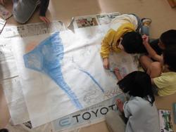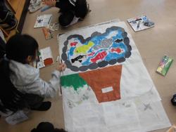 南区のお祭り用の「絵どうろう」作成していました。かわいい「夢の池」にいる鯉をかいたり、学校からの景色をかいたり、楽しんで作品を仕上げていました。