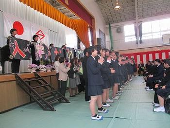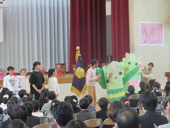 在校生代表のお祝いの言葉では、かしわクロックちゃんも登場!