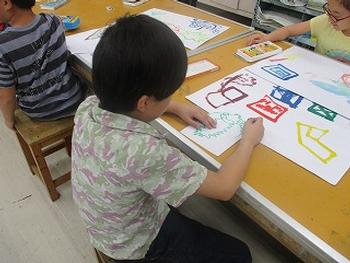 クレパスを使って、自由な発想で描いて作品に貼り付けます。