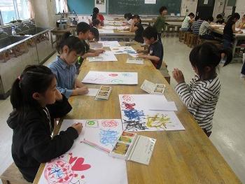 図工室で3年生が、自分が乗ってみたいロケットを描いていました。