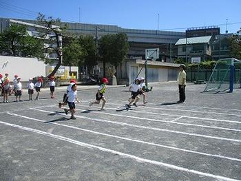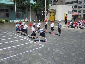 運動会の徒競走の並び方と、走り方の練習をしていました。