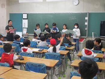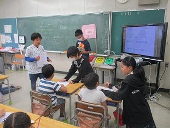 ふり返りの書き方も、1年生に6年生が優しく教えています。