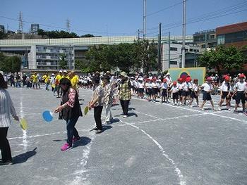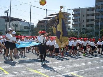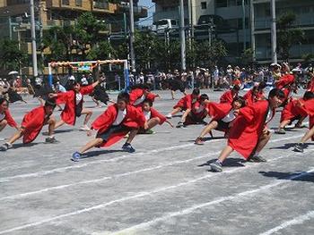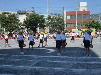 元気あふれる、低学年「南の風をまきおこせ!南太田エイサー」