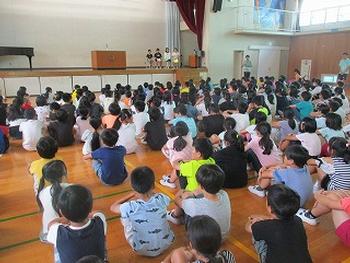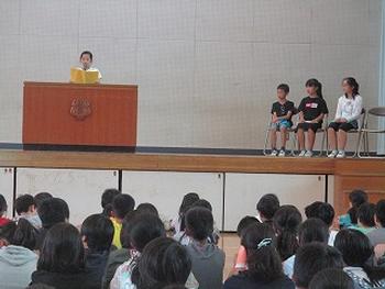 5年生と6年生のクラス代表の発表を、4年生も一緒に聴きます。