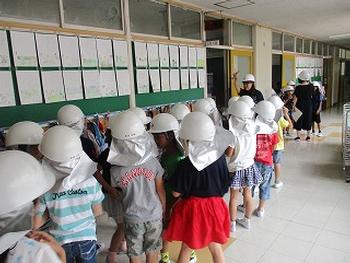 揺れが収まったら、素早く廊下に整列して校庭に移動。