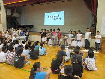 最初に児童が説明をします。実行委員から全体にわたる説明をし…