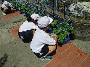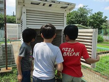理科の観察で、百葉箱をのぞいて見ている子もいました。