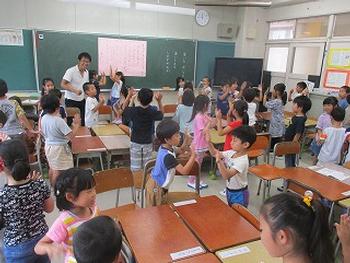 1年生が、保育園の園児を迎えてレクを楽しみ…