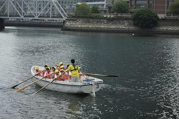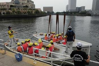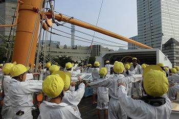 日本丸の甲板の上で、潮風を感じながら船乗り体操。