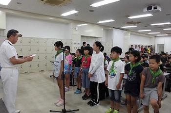 「海洋教室 初級 終了認定証」の授与。貴重な体験活動を終えました。