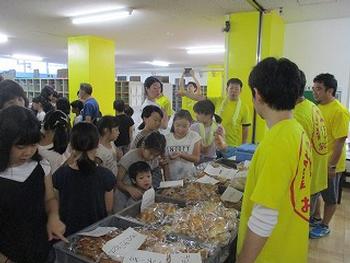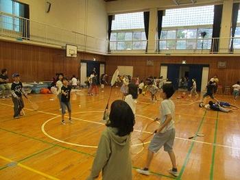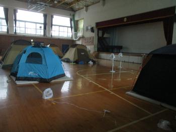 テント組は、体育館の中にテントを張って夜を明かしました。
