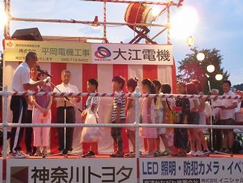 入選学年の児童が、やぐらの上で表彰を受けました。