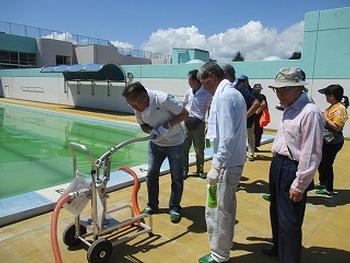 下水直結式なので、実際にプールの水をポンプで引いてみました。