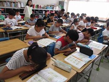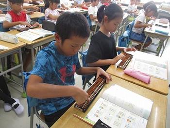 明日は、そろばんを使った大きな数や小数の計算をします。