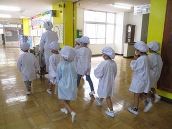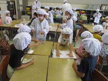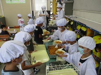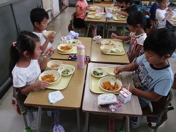 夏休み明け最初の給食は今日からです。(写真:1年生)