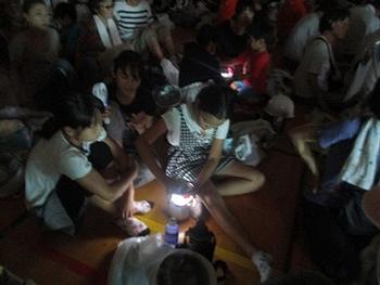 夜間体験訓練では、手動による発電のランタンを点灯。