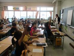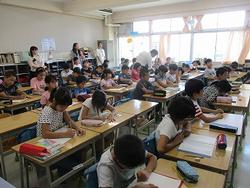 保護者の見守る中、真剣に授業に臨んでいます。 (4年生)