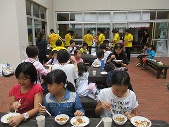 まずは、おやじ特製の日本一(?)うまい豚汁で腹ごしらえ。