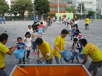 バケツリレー競争は、とても盛り上がりました。