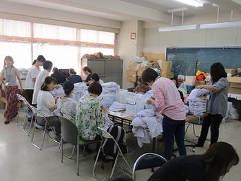 PTA保健委員会の方が、白衣の点検をしてくださっていました。