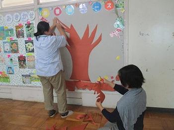 図書室廊下壁面の装飾を、新しくしたりしてくださっています。