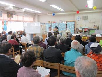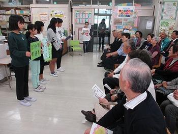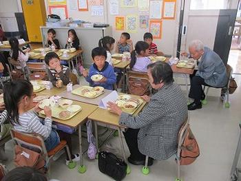 「見守ってあげ隊」や地域のお年寄りの方々との給食交流です。