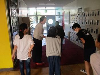 学級代表児童が教室までエスコートします。