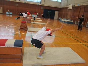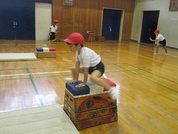 自分に合った高さの跳び箱で、跳ぶ練習をしていました。