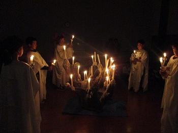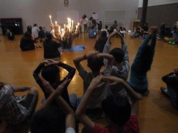 夕食後のキャンドルファイヤー。火の女神と火の精が登場!