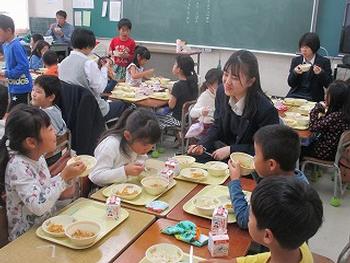 今回のY校生による英語活動は、給食も一緒に食べました。