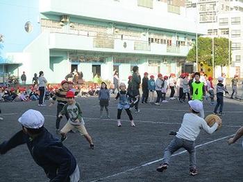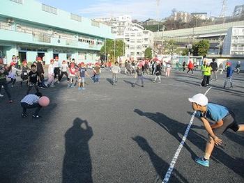 縦割りグループを赤白に分け、学年ブロック毎に対抗します。