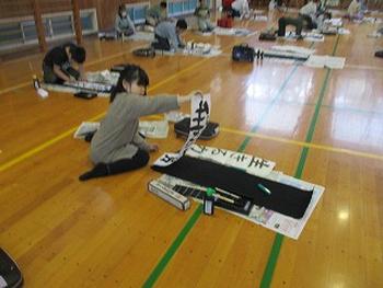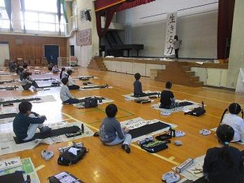 墨を付ける前の筆で、シュミレーションをしている子もいました。