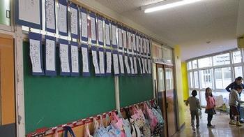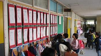 みんなの書き初めが廊下に展示されました。