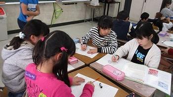 1年生は、ペン習字による「お正月」。