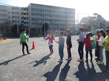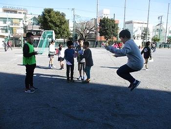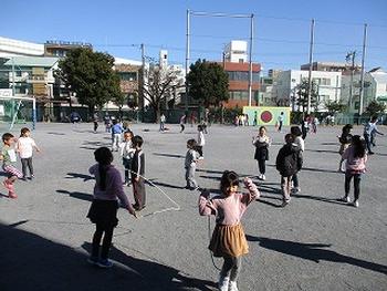 休み時間に、縄跳びの練習をしているお友達がたくさんいます。