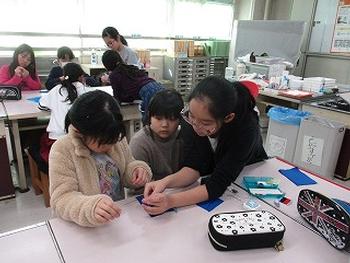 家庭科室では、廊下に料理手芸クラブの作品が展示され…