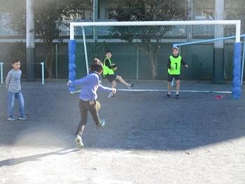 校庭では、サッカーバスケクラブが体験会を開いていました。