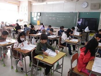 今日は算数から…一生懸命に取り組んでいます。 (写真:4年生)