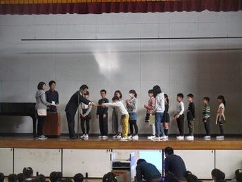 「読書50冊」11名…と、45枚もの賞状を手渡しました。