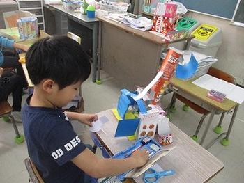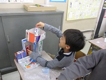 空き箱を利用して、住んでみたいお家を作っていました。