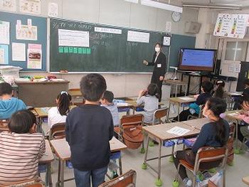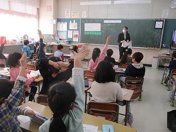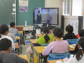 給食の時間に、橫浜子ども会議の代表児童生徒制作のTV放送。