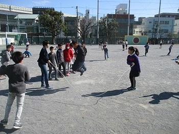 縄跳びなどをして、外で元気よく遊んでいます。