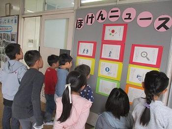 保健室前に、新型コロナウイルスによる感染症予防の掲示物が…