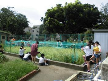 5年生は、稲を観察して様子を記録していました。