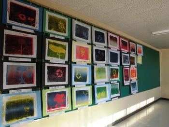 版画で描いた、すてきな花が飾られていました。