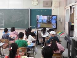 給食の時間にテレビ放送で、絵本の読み聞かせをしてくれました。