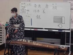 講師の先生から「琴」の歴史などを聞いたら、お手本を見て、、、