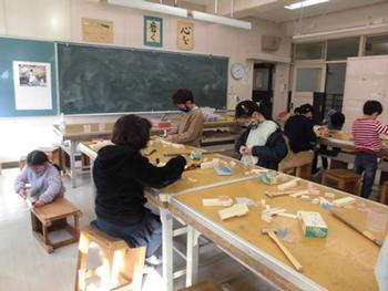 木と木を組み合わせたり、くぎ打ちをしたりして頑張りました。