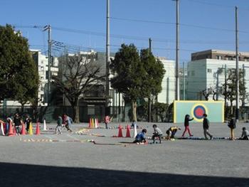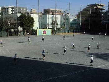 校庭を広く使って、運動をしていました。
